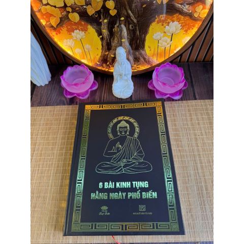 🍀Trọn Bộ 6 Bài Kinh Tụng Hàng Ngày+Quà Tặng 3 Món (lá bồ đề, vòng Phật, túi gấm)-Tuệ Minh