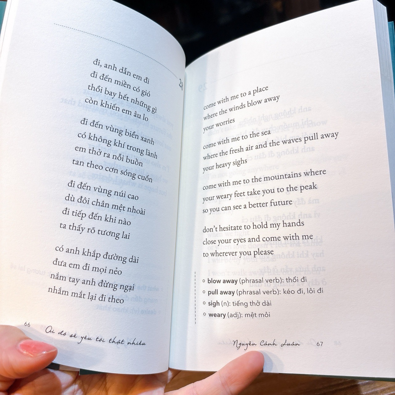 Đó là đôi câu trích từ “Ai đó sẽ yêu tôi thật nhiều - Someone would love me for me” - một tập thơ song ngữ Việt - Anh với những ý thơ độc đáo, phù hợp với đặc trưng của từng ngôn ngữ.