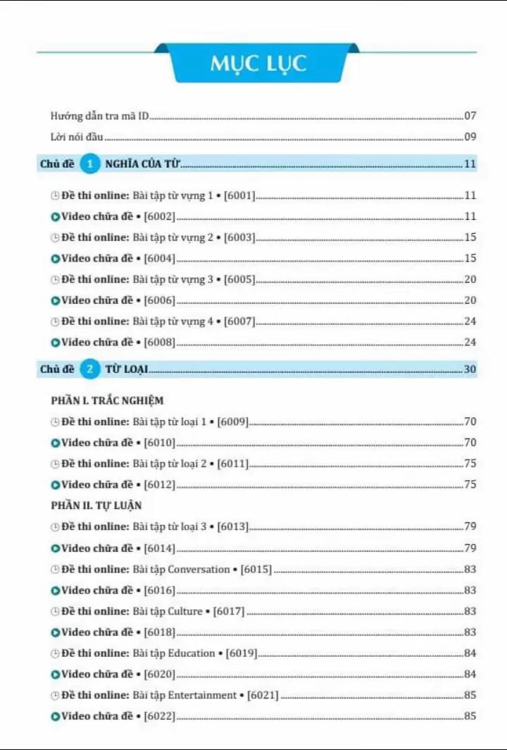 Đa phần các chủ đề trong bộ sách này đều có bảng hệ thống từ vựng – cấu trúc- cụm từ. Hơn thế nữa, với việc bao quát toàn bộ các chủ điểm từ vựng trong tiếng Anh từ mức độ cơ bản đến nâng cao cùng với một số lượng lớn câu hỏi bài tập từ vựng thực hành có lời giải chi tiết kèm video chữa, bộ sách này chắc chắn sẽ là tư liệu tham khảo bổ ích cho tất cả các bạn hs cấp 2-3 ôn luyện chuẩn bị tốt cho các kì thi.