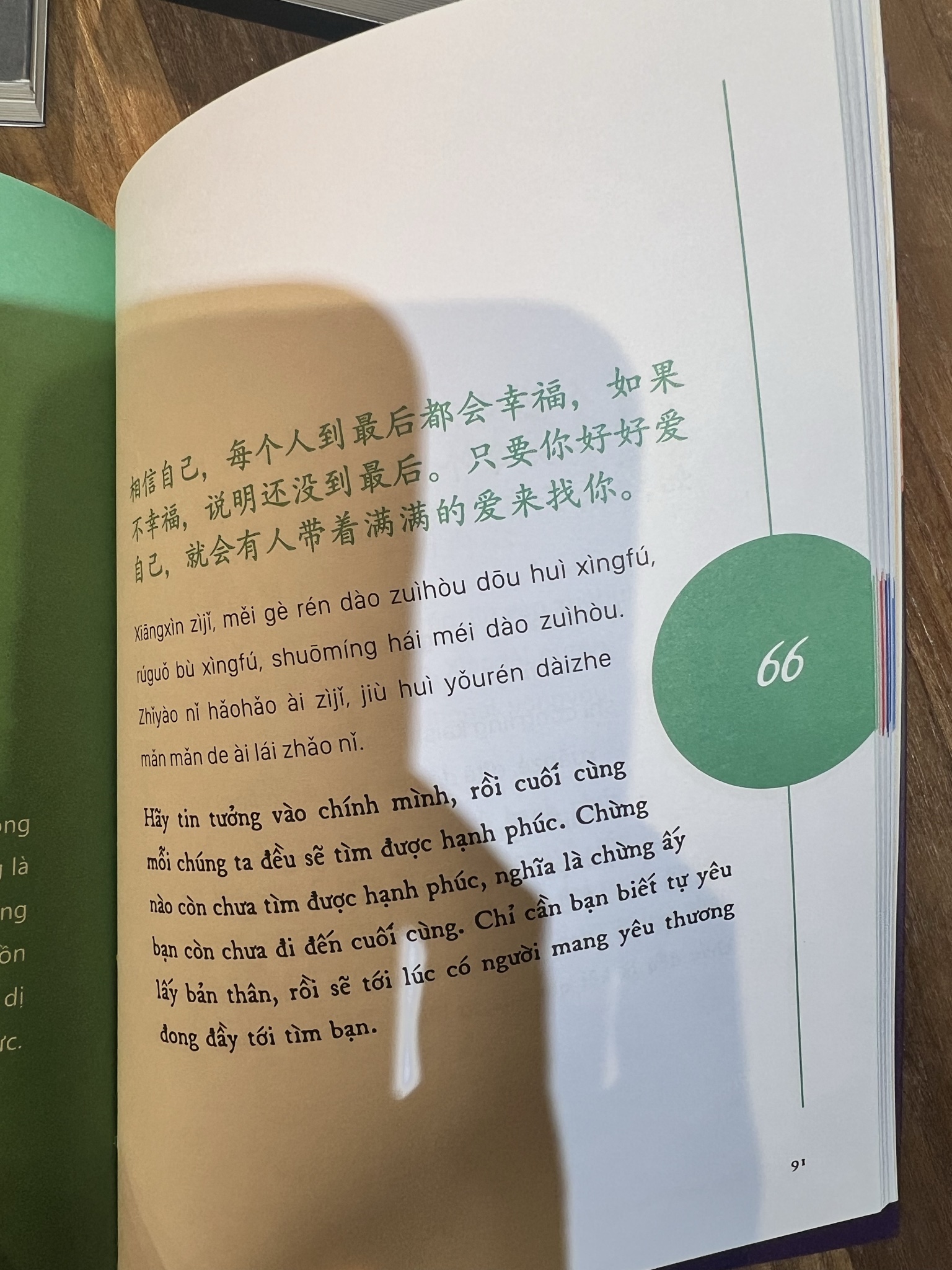 110 trích dẫn song ngữ Trung – Việt xoay quanh những chủ đề: phát triển bản thân, sống độc lập tự cường, lựa chọn trong tình yêu, hôn nhân, cách giải quyết những vấn đề khó khăn trong cuộc sống,... và quan trọng nhất là tinh thần lạc quan kiên trì theo đuổi đam mê, trở thành phiên bản tốt nhất của chính mình. Thông điệp xuyên suốt trong cuốn sách này là: “Dẫu muôn vàn ngã rẽ cuộc đời có đưa bạn tới đâu, hãy luôn chọn làm một người kiêu hãnh.”