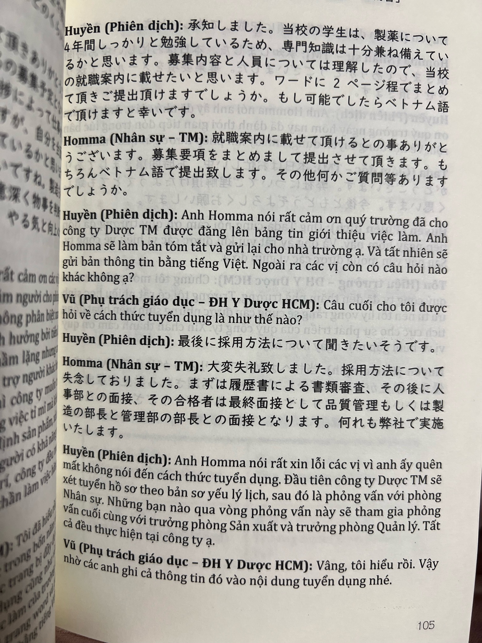 Cuốn sách “Hành trình phiên dịch sống động - Luyện tập phiên dịch tiếng Nhật trong thực tế” dày 608 trang với 68 chủ đề biên - phiên dịch đa dạng, kèm FILE ÂM THANH, cung cấp những bối cảnh sát thực tế phiên dịch Nhật - Việt, Việt - Nhật như: phiên dịch cuộc họp nội bộ trong công ty, đàm phán thương mại, sáp nhập doanh nghiệp, tư vấn đầu tư, tư vấn kế toán, phiên dịch hội thảo, phiên dịch IT, du học, xuất khẩu lao động, cuộc họp cao cấp của quan chức hai nước, …