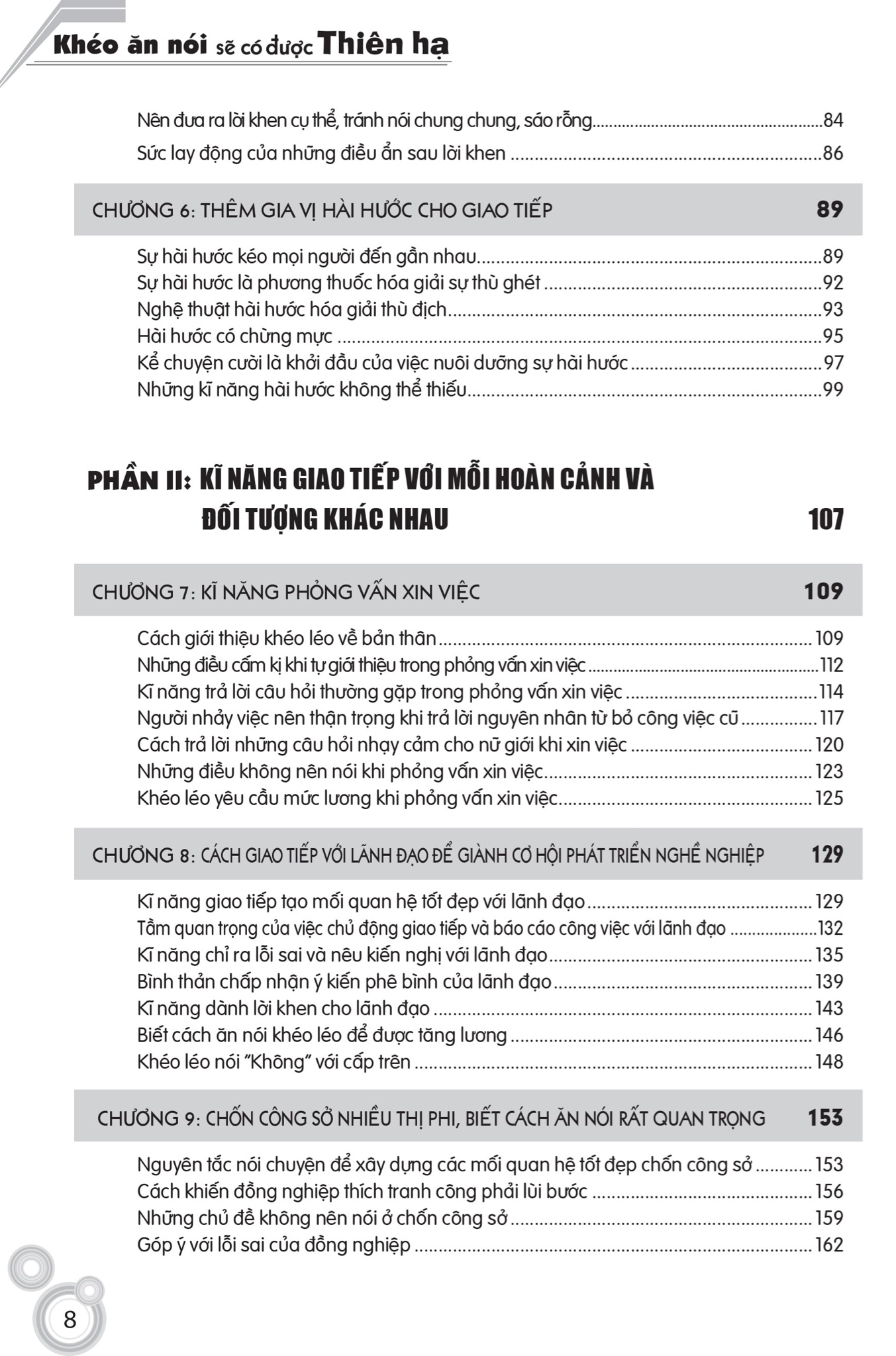 Trong xã hội thông tin hiện đại, sự im lặng không còn là vàng nữa, nếu không biết cách giao tiếp thì dù là vàng cũng sẽ bị chôn vùi. Trong cuộc đời một con người, từ xin việc đến thăng tiến, từ tình yêu đến hôn nhân, từ tiếp thị cho đến đàm phán, từ xã giao đến làm việc... không thể không cần đến kĩ năng và khả năng giao tiếp. Khéo ăn khéo nói thì đi đâu, làm gì cũng gặp thuận lợi. Không khéo ăn nói, bốn bề đều là trở ngại, khó khăn. Trong thời đại thông tin và liên lạc phát triển nhanh chóng, tin tức được cập nhật liên tục, các công cụ thông tin và kĩ thuật truyền thông được ứng dụng rộng rãi như ngày nay thì việc khéo ăn nói đã trở thành “cái tài số một thiên hạ”. Trong khoảng thời gian ngắn nhất, nếu ai có thể nêu bật được khả năng, thực lực của mình cho đối phương biết thì đó sẽ là người chiến thắng. Chính vì vậy mà câu nói “Khéo ăn nói sẽ có được thiên hạ” rất có ý nghĩa. Vậy, như thế nào mới gọi là biết cách ăn nói? Nói năng lưu loát, không ấp úng có được gọi là biết cách nói chuyện không? Nói ngắn gọn, nói ít nhưng ý nghĩa thâm sâu có được gọi là biết cách nói chuyện không? Hay nhất định phải nói nhiều mới là biết nói chuyện?