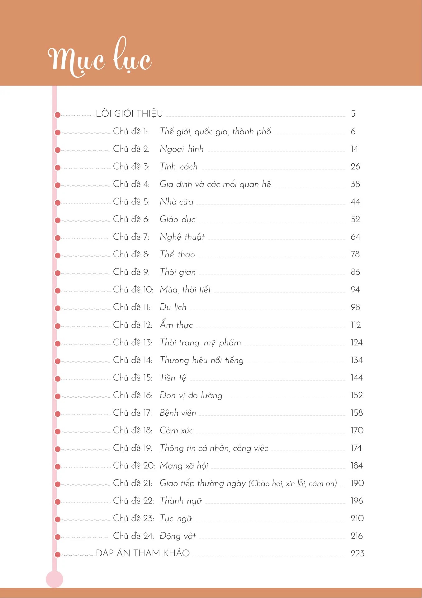 - Mỗi chủ đề trong cuốn sách sẽ cung cấp một lượng từ vựng dưới dạng sơ đồ tư duy, do đó người học có thể tăng cường khả năng liên kết giúp ghi nhớ từ vựng theo cụm chủ đề tốt hơn.