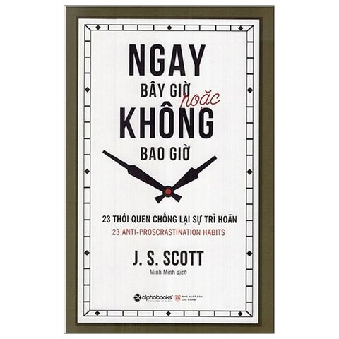 Ngay Bây Giờ Hoặc Không Bao Giờ (Tái Bản 2019) Ngay bây giờ hoặc không bao giờ sẽ giúp bạn khám phá ra hàng loạt ý tưởng giúp bản thân vượt qua sự trì hoãn hằng ngày. Trong khi nhiều cuốn sách khác chỉ cung cấp những mẹo mực đơn giản, thì với cuốn sách này, bạn sẽ biết được tại sao một chiến lược lại trở nên hiệu quả, nó loại bỏ những hạn chế và niềm tin nào và bằng cách nào chiến lược ấy có thể được ứng dụng tức thì vào cuộc sống của bạn… Thành công chỉ thực sự đến khi bạn giữ một lòng kiên trì sắt đá với những mục tiêu đã được đặt ra. Trong cuốn sách này, J. S. Scott đã cung cấp chi tiết những kế hoạch hành động trên mọi lĩnh vực của cuộc sống hằng ngày: từ chăm sóc sức khỏe, thể dục, công việc cho tới các mối quan hệ cá nhân. Không giống như các cuốn sách rèn luyện kỹ năng tầm thường khác, nội dung cuốn sách tập trung tối đa vào hai chữ “hành động”. Vì vậy, thay vì phải đọc những lời khuyên chung chung, bạn sẽ nhận được những phương pháp có thể được thực hiện ngay lập tức nhằm tạo lập những thói quen có thể đánh bại sự trì hoãn.