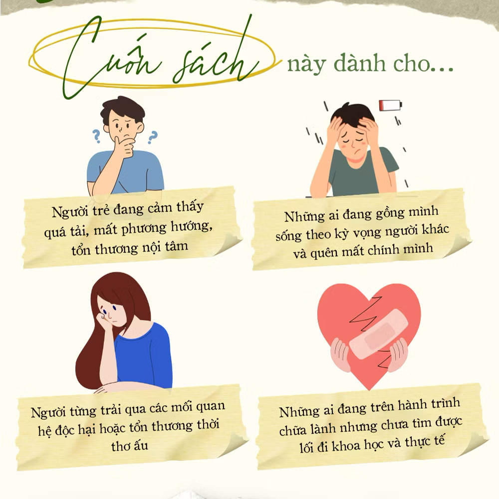 Dựa trên nền tảng khoa học tâm lý vững chắc, tác giả Dr. Ahona Guha – nhà tâm lý học lâm sàng – đã kết hợp nhiều liệu pháp thực hành, giúp bạn không chỉ hiểu rõ về cơ chế vận hành của nội tâm mà còn từng bước xây dựng sự kiên cường tinh thần, học cách chấp nhận, thiết lập ranh giới và sống đúng với giá trị của chính mình.