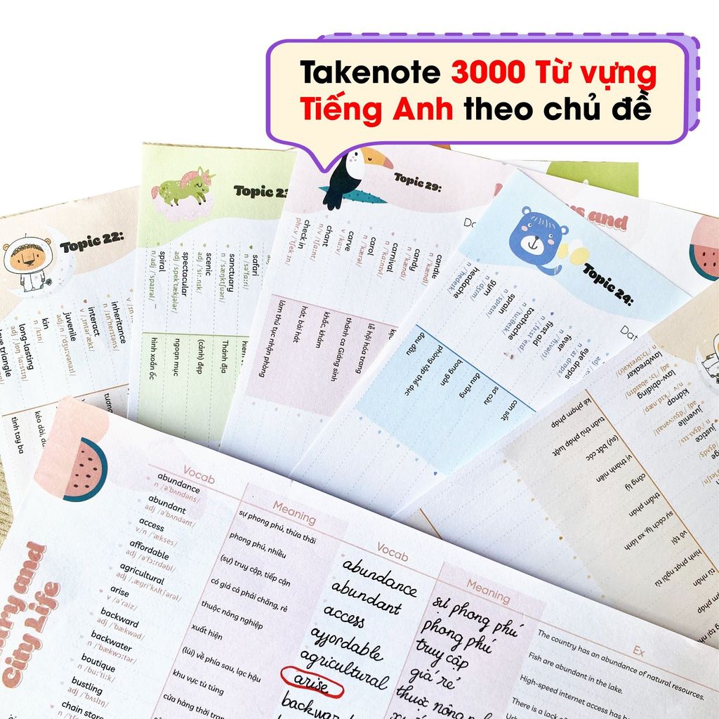 Set 150 tờ TAKENOTE 3000 từ vựng Tiếng Anh theo chủ đề thông dụng nhất - Nhà sách Ôn luyện