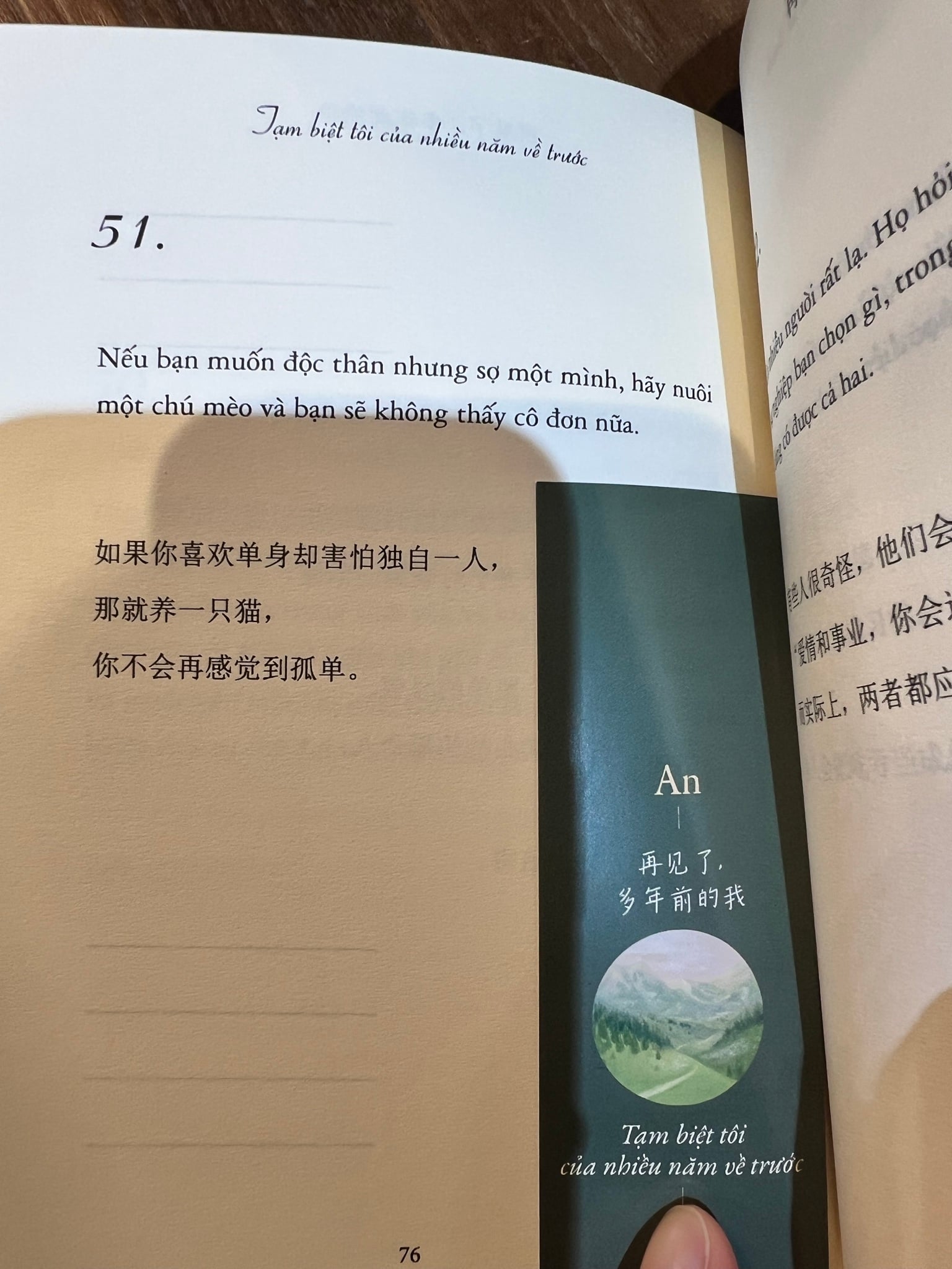 Khép lại “Tạm biệt tôi của nhiều năm về trước”再见了,多年前的我 , bạn sẽ trở thành một bạn hoàn toàn mới - 1 dáng vẻ sâu lắng, kiên cường, lắng đọng và rực rỡ hơn. Bởi đây không chỉ là một ấn phẩm mang đầy ý nghĩa sâu sắc, mà còn là một cuốn sách tri thức giúp bạn trau dồi ngoại ngữ, nâng cấp bản thân và bồi dưỡng vẻ đẹp tâm hồn.