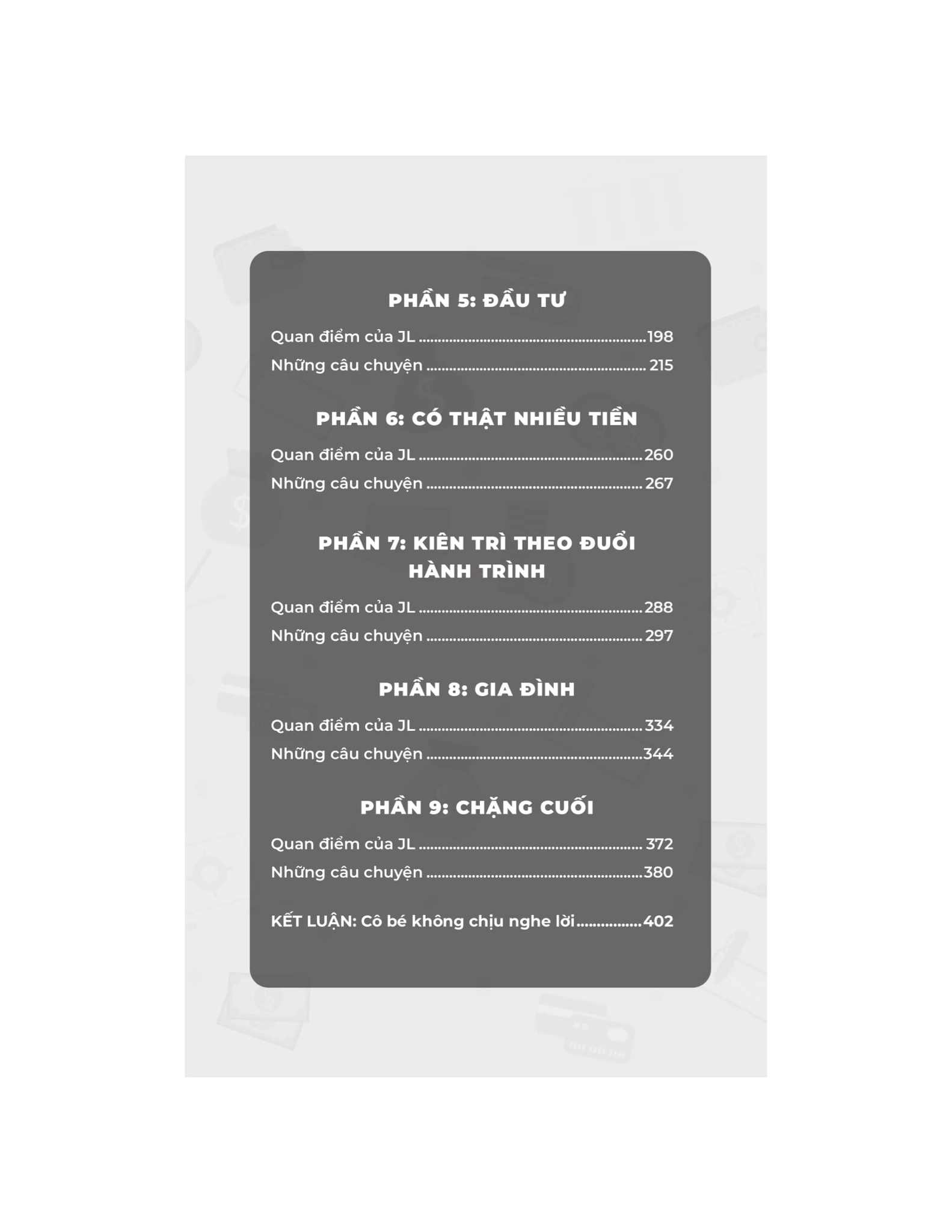 Với hơn 100 câu chuyện thực tế từ những người thuộc mọi tầng lớp xã hội: giáo viên, y tá, người lao động phổ thông, kỹ sư... đã đạt được tự do tài chính không phải thông qua con đường thường thấy trên truyền thông là mức thu nhập khủng hay khoản may mắn đặc biệt. Cuốn sách chứng minh rằng: Tự do tài chính là điều dành cho mọi người, nếu biết cách khác biệt trong tư duy cốt lõi, khôn ngoan trong chiến lược đầu tư và kỷ luật trong chi tiêu hàng ngày.